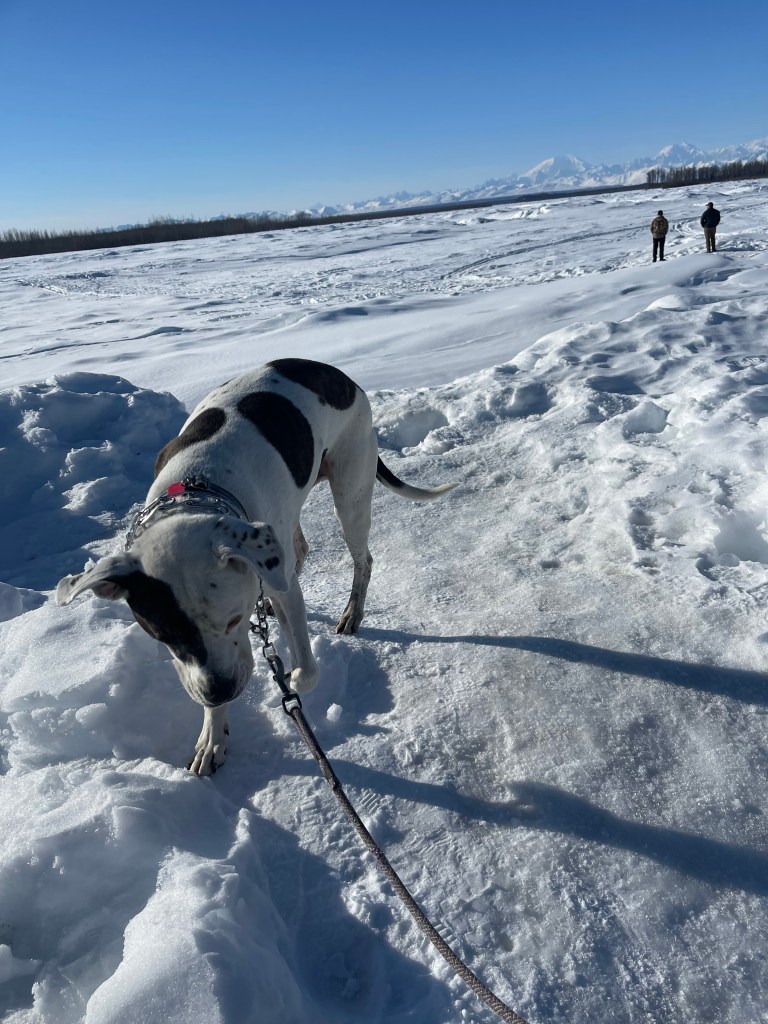 It’s cold here and I smell lots of big animals….mom and dad said it will warm up in a few months, I’m not sure I believe them.